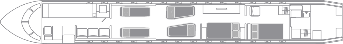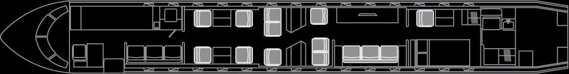 The largest and longest-range business jet, the 7500 offers unbeatable global connectivity and can fly up to 17 hours non-stop. Precision-engineered wings provide an exceptionally smooth ride. The large cabin offers four separate living spaces, including a permanent stateroom.